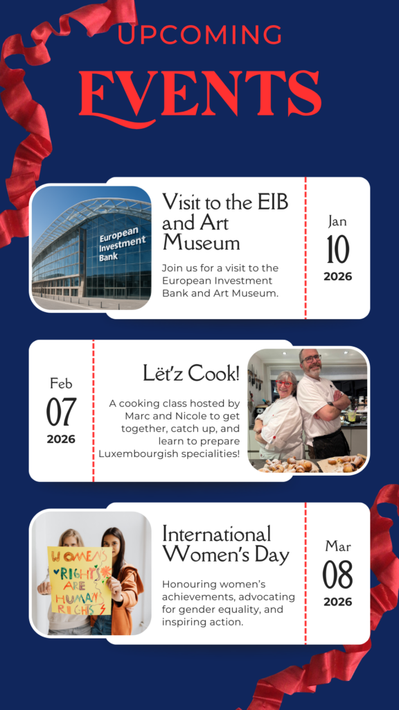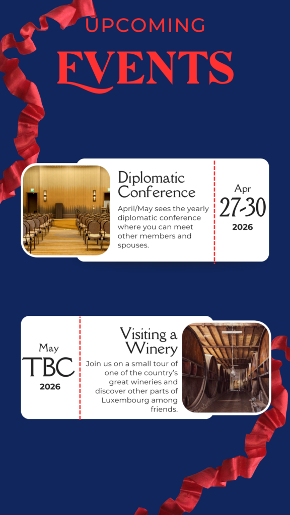 At the helm of ALCAT is a dedicated board of spouses and partners of Luxembourgish diplomats, united by a shared commitment to fostering community and support within the diplomatic circle. Their collective efforts ensure that ALCAT continues to thrive as a welcoming and resourceful organisation for its members.