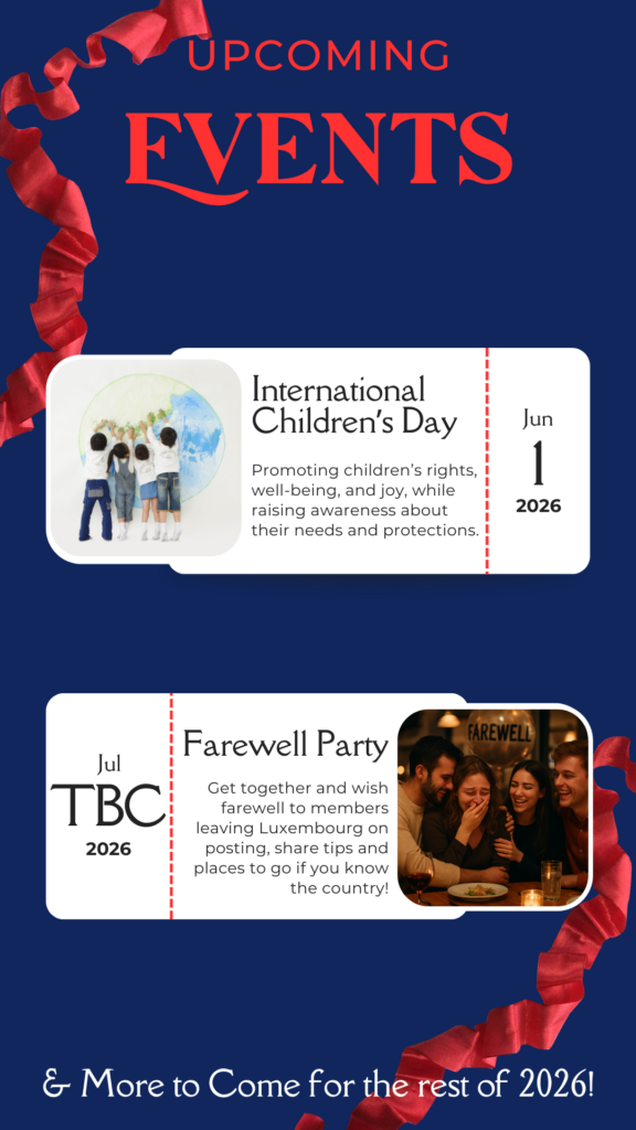For this purpose, we have gathered and continue to gather information concerning your rights as expats, as well as your obligations. Furthermore, we have regular social gatherings, be it in-person or online, to allow different members posted in the same country to be able to communicate and share their experiences or worries.